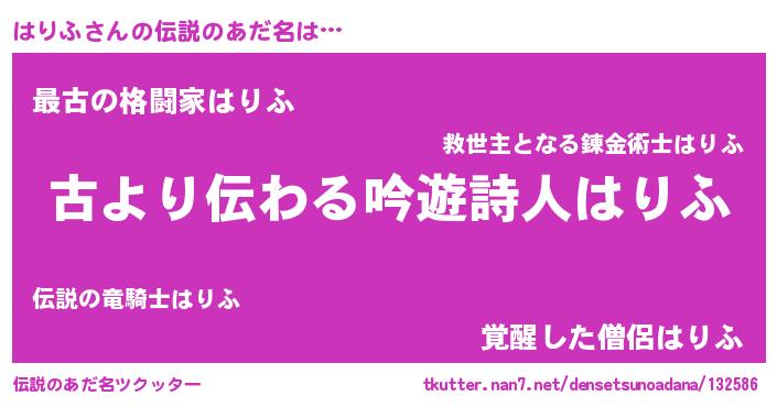 | 意味不明あだ名 | 『もやし科はりふ属』『永久保存はりふ』 |