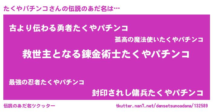 | ヒーロー風カッコイイあだ名 | 『仮面タクダー』『ネオタクヤパチンコ』 |