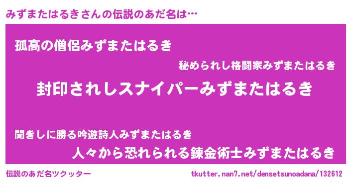 | 意味不明あだ名 | 『自称みずまたはるき』 |