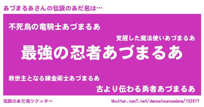 | ファンタジー風あだ名 | 『エターナルアヅマルアー』『ゼアヅトゥ』 |