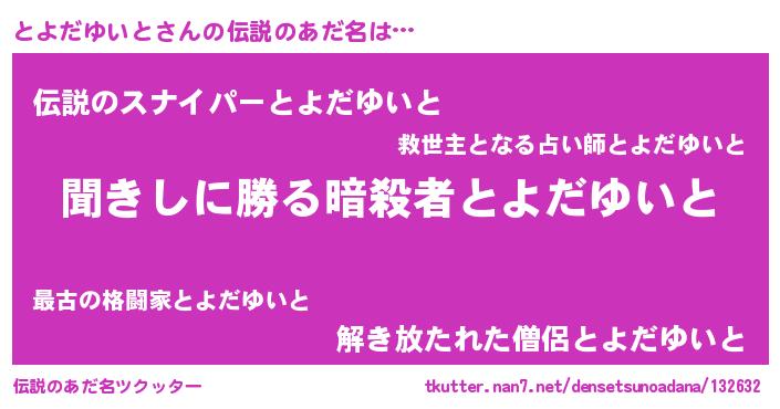 | ヒーロー風カッコイイあだ名 | 『ネオトヨダユイト』『幻影騎士トヨ』 |