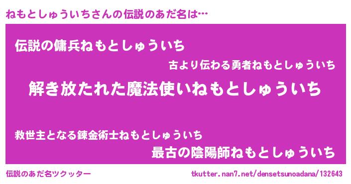 | ポケモン風あだ名 | 『ヒネモトシュウイチ』『ネモセウス』 |