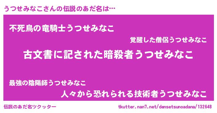 | ヒーロー風カッコイイあだ名 | 『究極戦士ウツセミナコ』『炎刃騎士ウツ』 |
