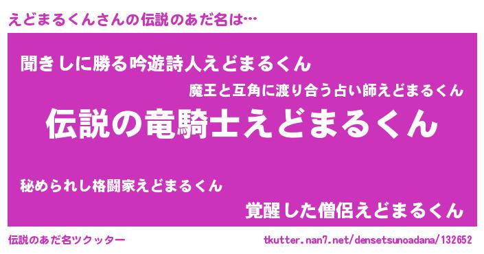 | 男性向けラノベタイトル風あだ名 | 『魔弾の王とえどまるくん』 |