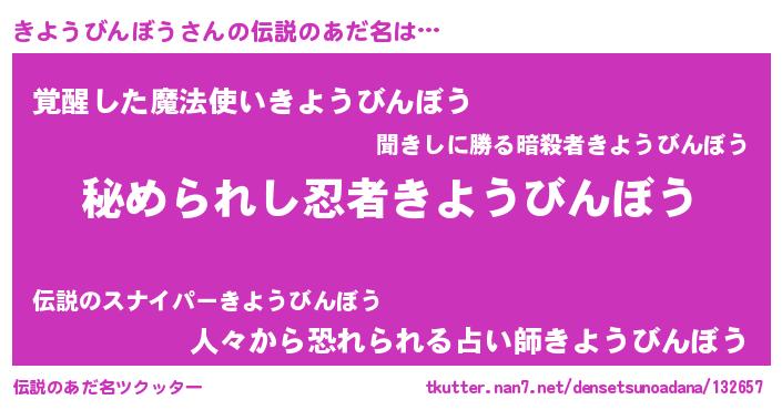 | ファンタジー風あだ名 | 『エターナルキヨウビンボウー』 |