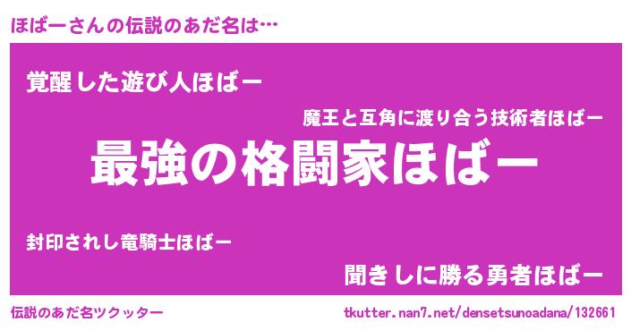 | ヒーロー風カッコイイあだ名 | 『ウルトラほばーマン』『銀牙騎士ホバ』 |