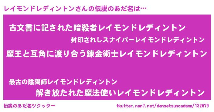 | ヒーロー風カッコイイあだ名 | 『愛の使者レイモンドレディントン』 |