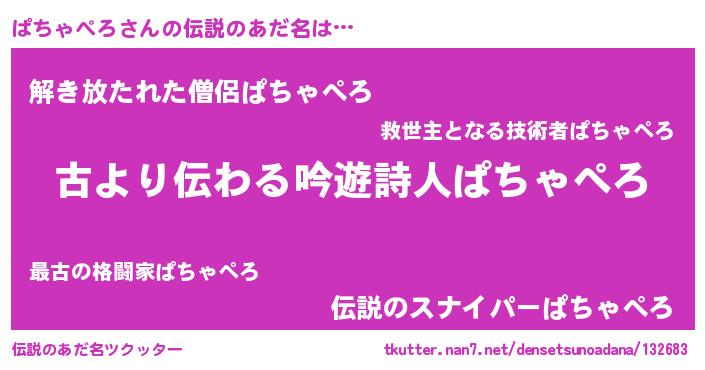 | 意味不明あだ名 | 『永久保存ぱちゃぺろ』 |