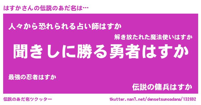 | ヒーロー風カッコイイあだ名 | 『ネオハスカ』『正義の使者はすか』 |