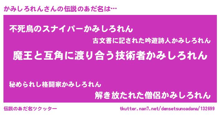 | 女子向けラノベタイトル風あだ名 | 『かみしろれん恋絵巻』 |