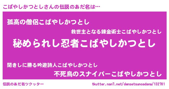 | ファンタジー風あだ名 | 『エターナルコバヤシカツトシー』 |