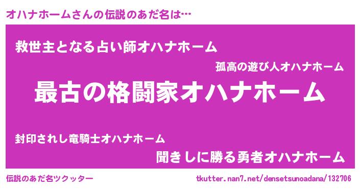 | 意味不明あだ名 | 『住所不定無職オハナホーム(5歳)』 |