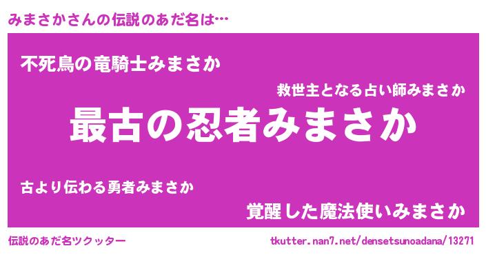 | ヒーロー風カッコイイあだ名 | 『ウルトラみまさかマン』『幻影騎士ミマ』 |