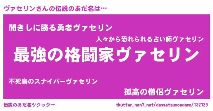 | ファンタジー風あだ名 | 『エターナルヴァセリンー』『ゼヴァトゥ』 |