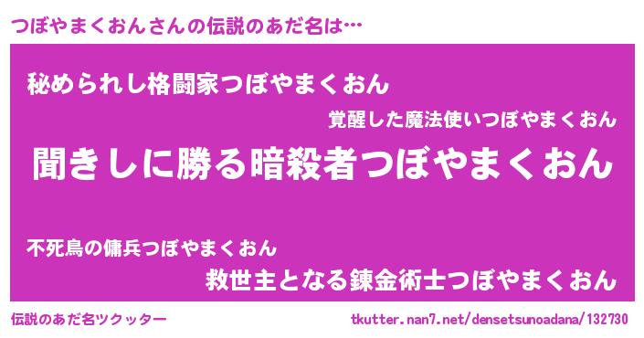 | 胡散臭い通販商品みたいなあだ名 | 『絶対に幸福をもたらす健康食品…その名も「つぼやまくおん」』 |