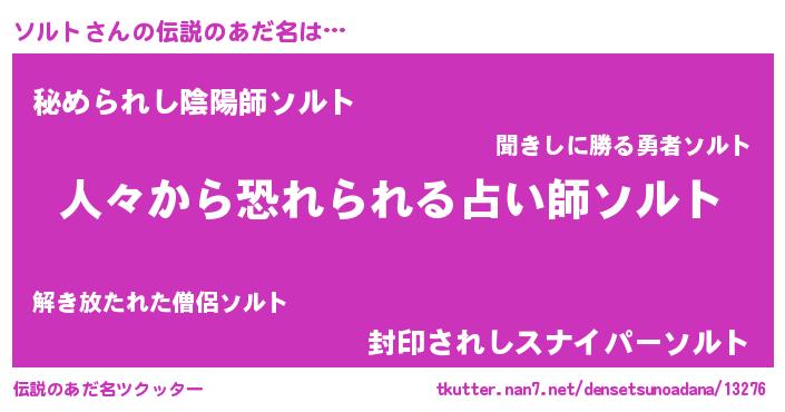 | ファンタジー風あだ名 | 『クインソット』『エターナルソルトー』 |