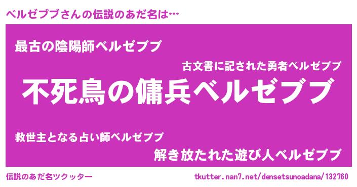 | ヒーロー風カッコイイあだ名 | 『仮面ベルダー』『スーパーベルゼブブ』 |