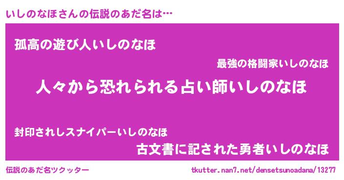 男性向けラノベタイトル風あだ名 | 『魔法科高校のいしのなほ』 |