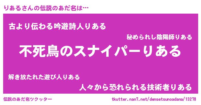 | ヘコむあだ名 | 『りあもー』『りある(笑)』 |
