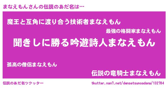 | ヒーロー風カッコイイあだ名 | 『ネオマナエモン』『愛の使者まなえもん』 |
