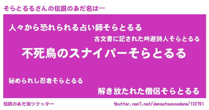 | 胡散臭い通販商品みたいなあだ名 | 『モテモテ間違いなし霊験あらたかなお札…その名も「そらとるる」』 |