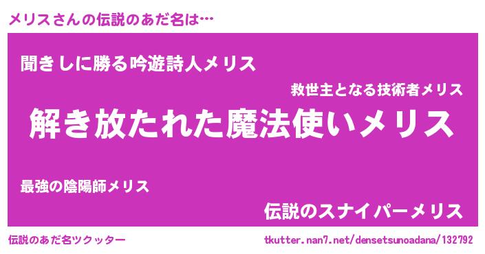| ヘコむあだ名 | 『メリお』『メリス(笑)』『レバニラ』 |