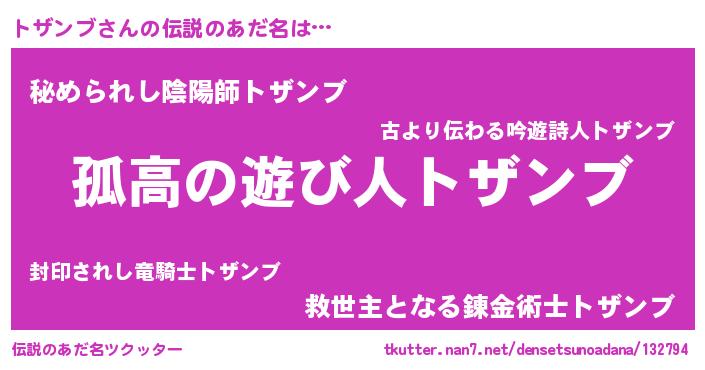 | 意味不明あだ名 | 『とにかく怪しいトザンブ』 |