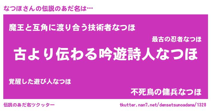 | 意味不明あだ名 | 『永久保存なつほ』『自称なつほ』 |