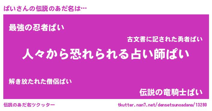 | ヒーロー風カッコイイあだ名 | 『友情の使者ぱい』『ウルトラぱいマン』 |