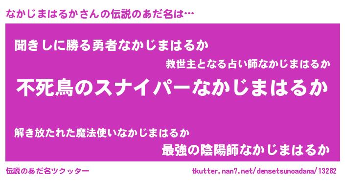 | 胡散臭い通販商品みたいなあだ名 | 『モテモテ間違いなし霊験あらたかなお札…その名も「なかじまはるか」』 |