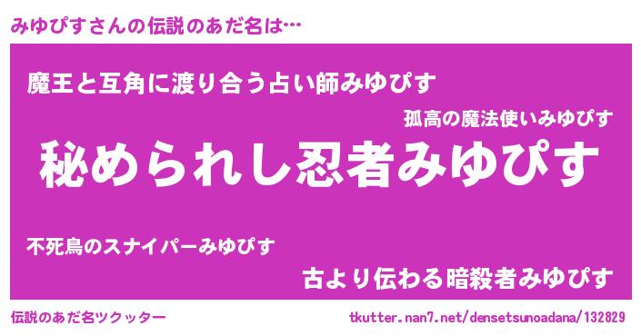 | ファンタジー風あだ名 | 『ゼミユトゥ』『エターナルミユピスー』 |