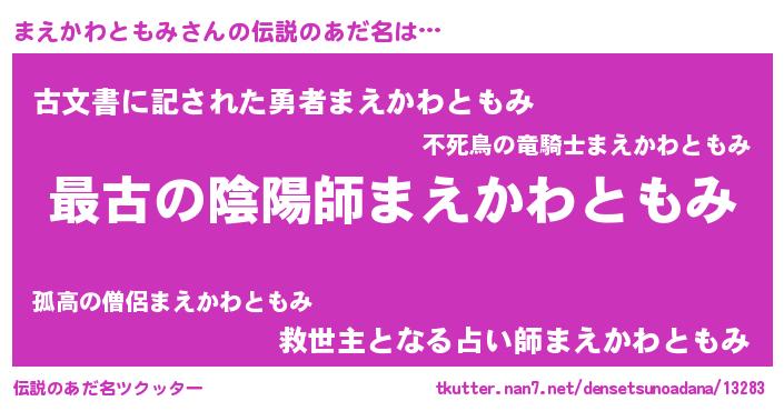 | 意味不明あだ名 | 『まえかわともみフォーエバー』 |