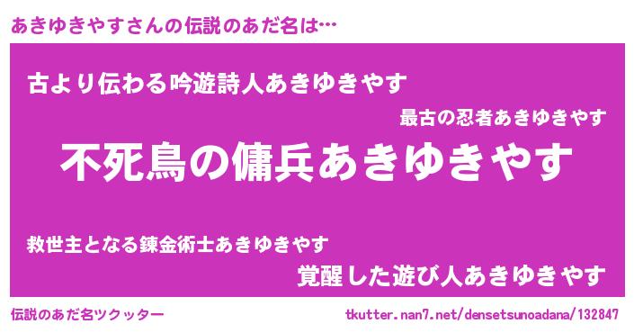 | 胡散臭い通販商品みたいなあだ名 | 『モテモテ間違いなし水晶球…その名も「あきゆきやす」』 |