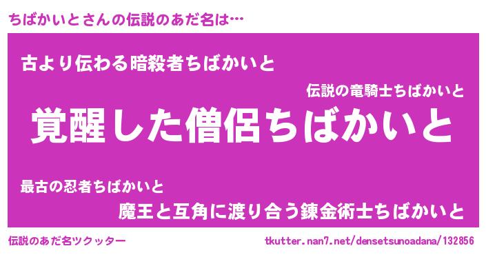 | ヒーロー風カッコイイあだ名 | 『天弓騎士チバ』『ネオチバカイト』 |