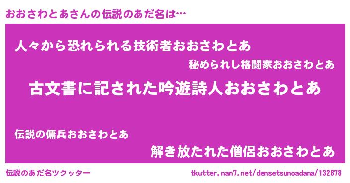 | 肩書あだ名 | 『おおさわとあ先生』『おおさわとあ総統』 |