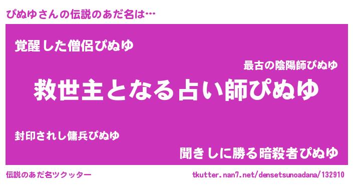 | ヒーロー風カッコイイあだ名 | 『慈愛の使者ぴぬゆ』『究極戦士ピヌユ』 |