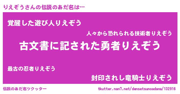 | ポケモン風あだ名 | 『ゼニリエ』『リエゴンZ』『リーエイ』 |