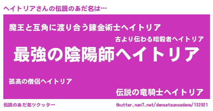 | 欧米人風あだ名 | 『トリンドルヘイトリア』 |