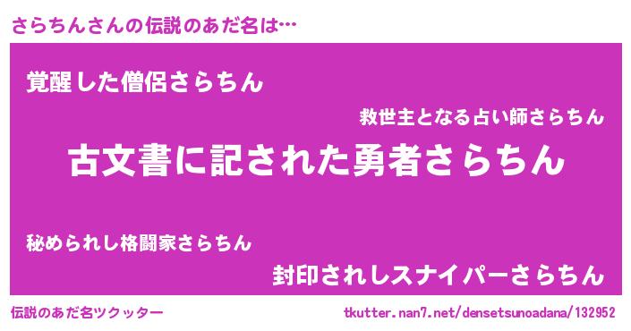 | ヘコむあだ名 | 『さらちん(苦笑)』『さらっ子』 |