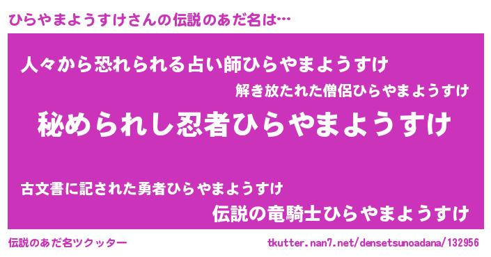 | 意味不明あだ名 | 『ひらやまようすけフォーエバー』 |