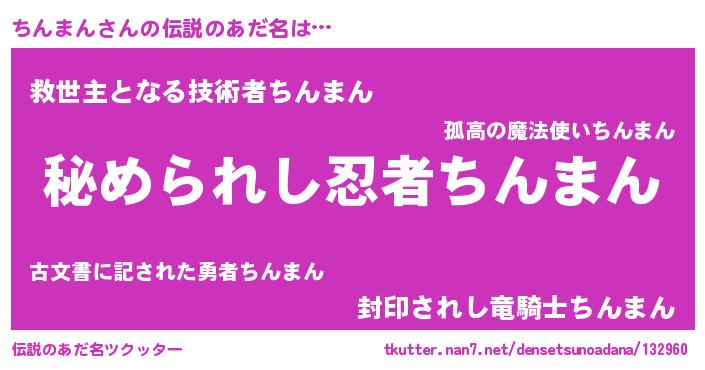 | ヒーロー風カッコイイあだ名 | 『ウルトラちんまんマン』『黄金騎士チン』 |
