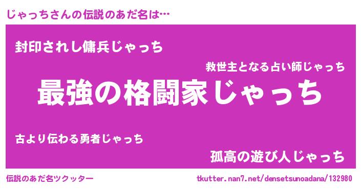 | ファンタジー風あだ名 | 『エターナルジャッチー』『ゼジャトゥ』 |