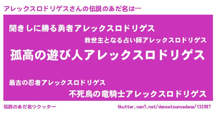 | ポケモン風あだ名 | 『ヒアレックスロドリゲス』『アレセウス』 |