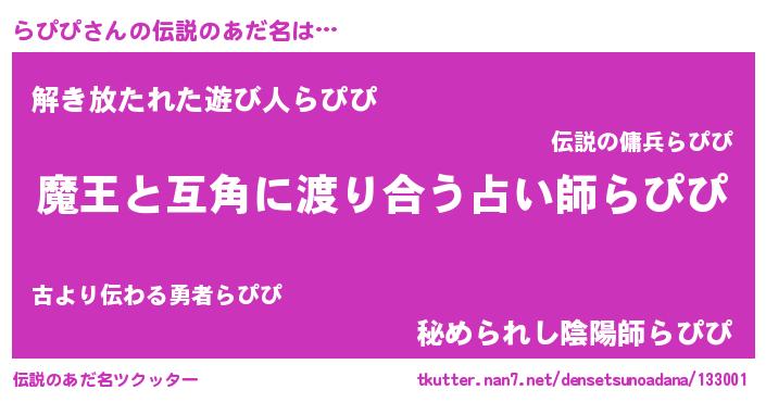 | 女子向けラノベタイトル風あだ名 | 『らぴぴ恋絵巻』『横柄らぴぴと宰相陛下』 |