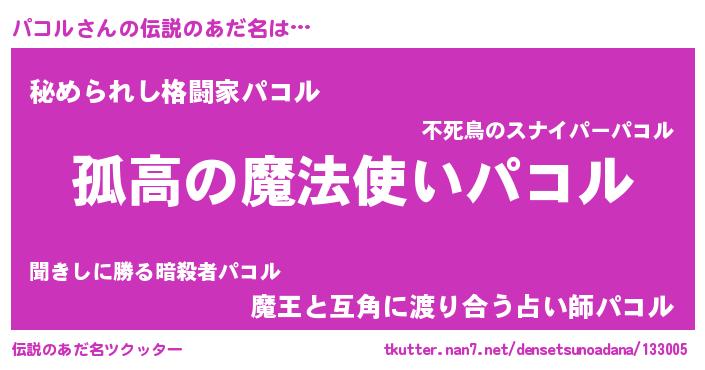 | 意味不明あだ名 | 『住所不定無職パコル(5歳)』『自称パコル』 |