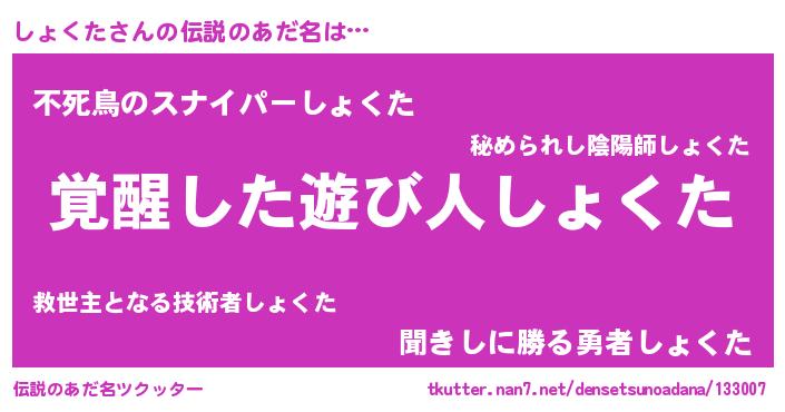 | ヒーロー風カッコイイあだ名 | 『究極戦士ショクタ』『魔戒騎士ショ』 |