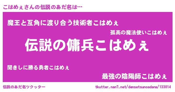 | 胡散臭い通販商品みたいなあだ名 | 『必ず成功する水晶球…その名も「こはめぇ」』 |
