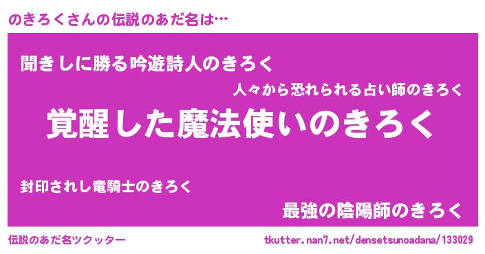| ポケモン風あだ名 | 『ヒノキロク』『ゼニノキ』 |