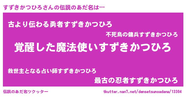 | ヒーロー風カッコイイあだ名 | 『天弓騎士スズ』『ネオスズキカツヒロ』 |