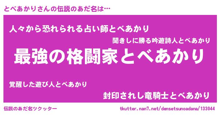 | 胡散臭い通販商品みたいなあだ名 | 『運命の人と巡り会える高級そうな絵画…その名も「とべあかり」』 |